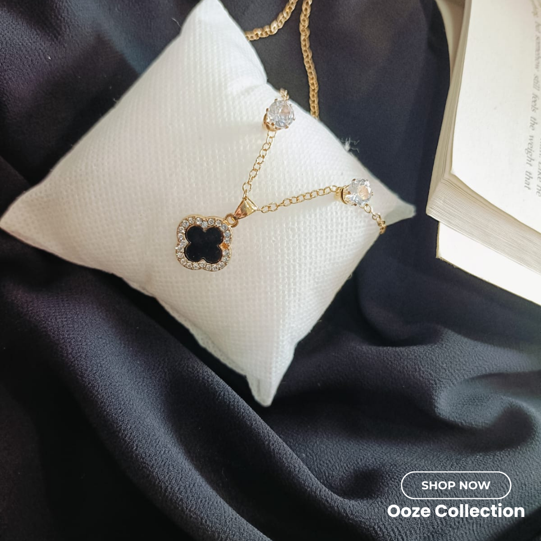 • Elegant Design: The black clover and shimmering stones create a sophisticated and eye-catching look.