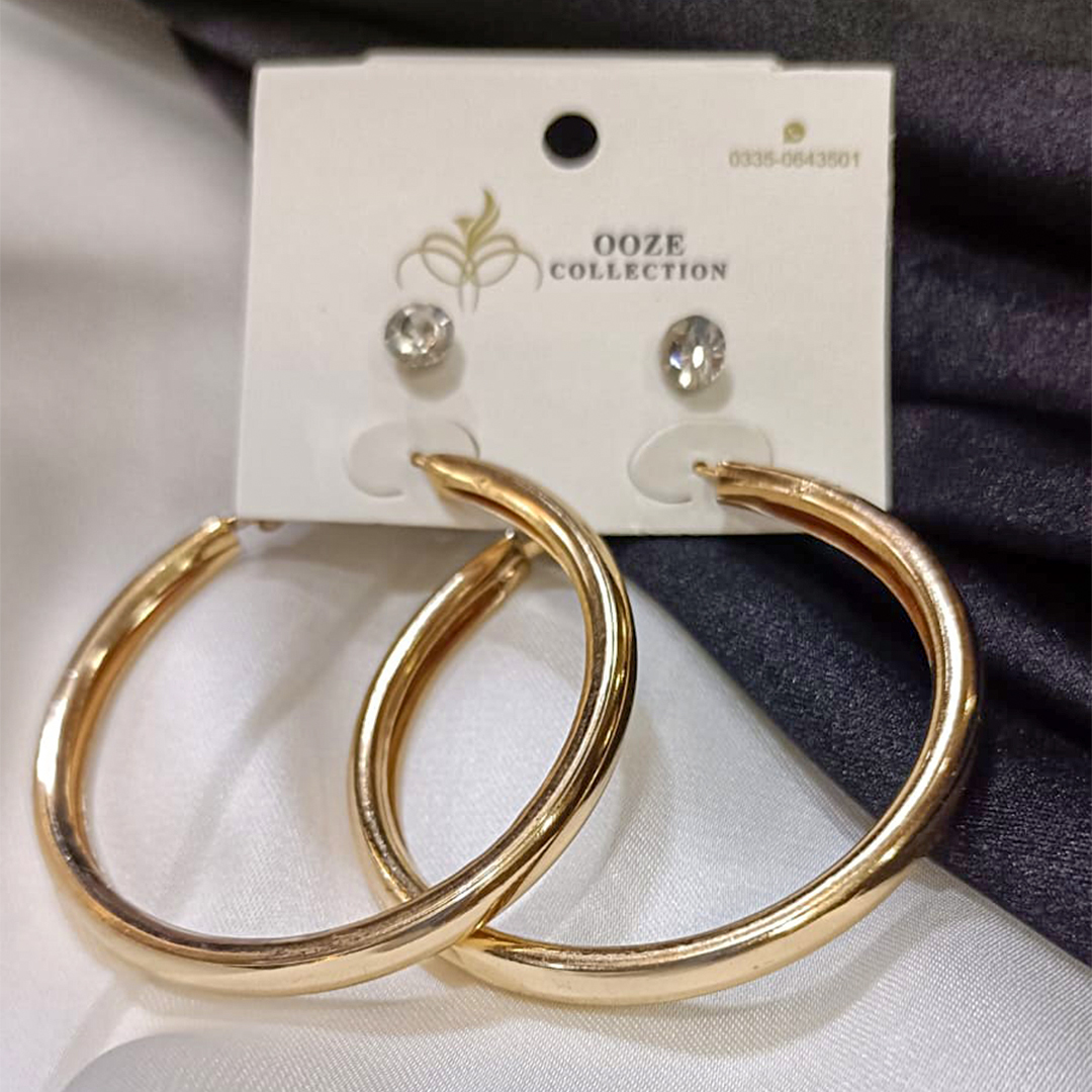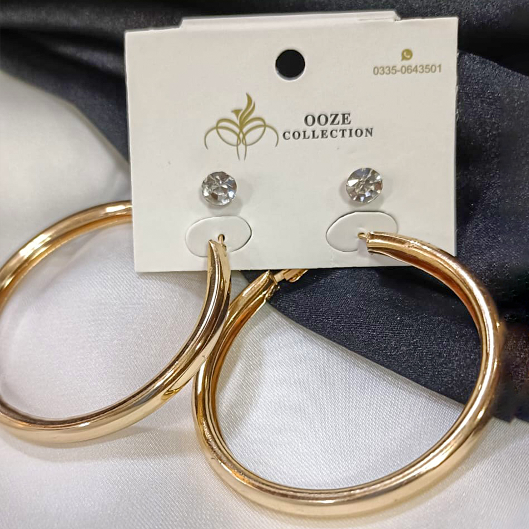 Elevate your look with this stunning 2-Pair Essential Gold Hoop & Stud Set, a perfect foundation for any stylish wardrobe. This collection gives you two must-have styles: a pair of large, polished gold-toned hoops for a bold statement, and a pair of small, dazzling crystal studs for a touch of everyday sparkle. The hoops feature a sleek, chunky design, embodying modern chic, while the studs offer classic elegance.