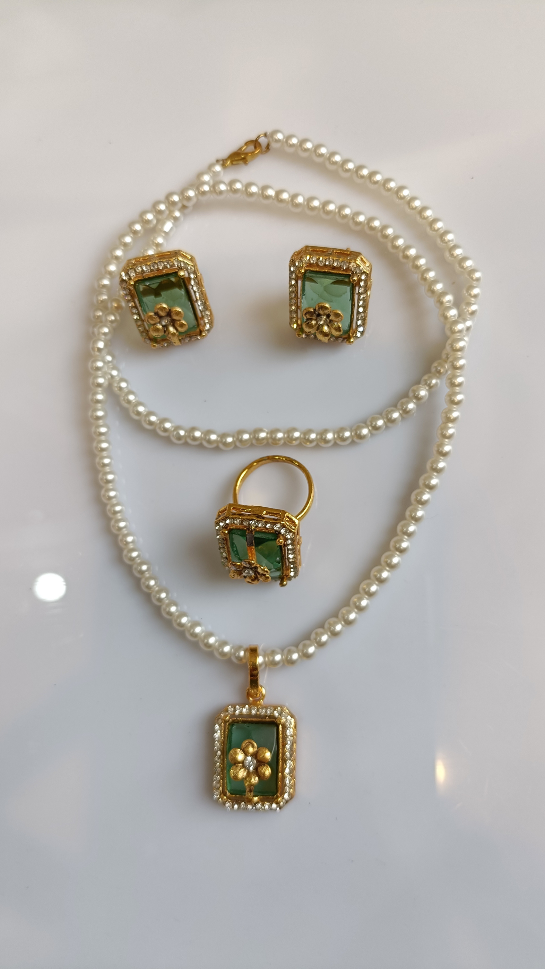 Mughal Green Stone & Pearl Collar Set